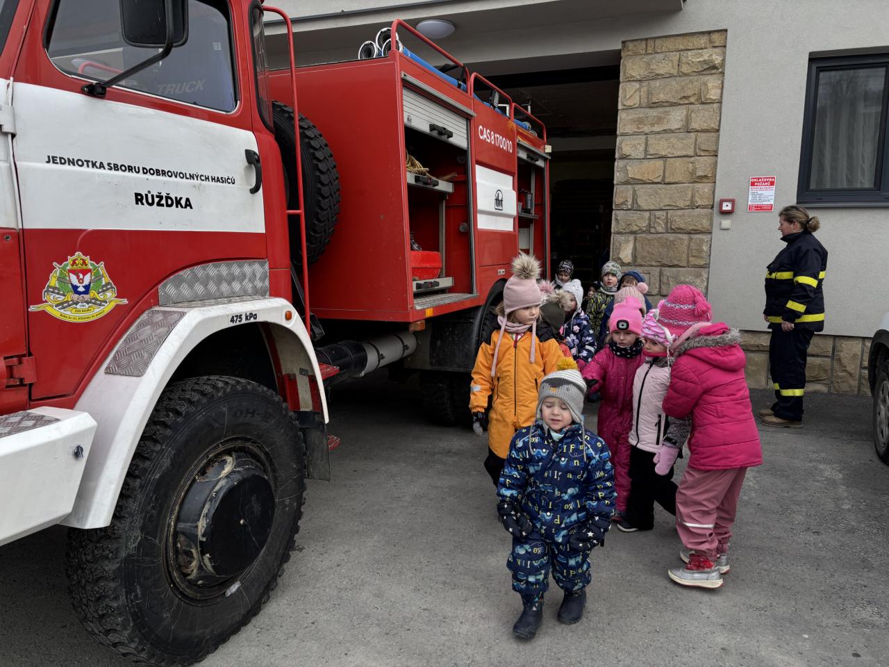 Tento týden jsme s dětmi navštívili hasičskou zbrojnici SDH - Růžďka, a také jsme se zúčastnili besedy s Policií ČR, která k nám přijela z Jablůnky. Děti se dozvěděly spoustu zajímavých informací o práci hasičů a policie, prohlédly si pracovní pomůcky a některé věci si mohly samy vyzkoušet.