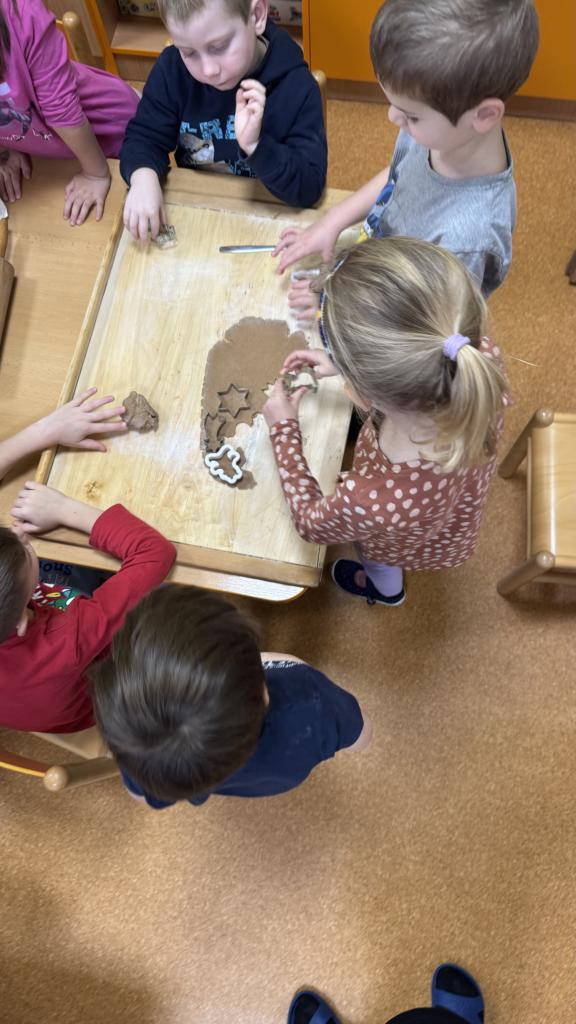 V naší mateřské škole proběhlo společné pečení perníčků. Děti si vyzkoušely práci s těstem, vykrajovaly perníčky a s nadšením se zapojily do celé přípravy.Pečení jsme si všichni moc užili. Ve třídě panovala příjemná a voňavá atmosféra.
